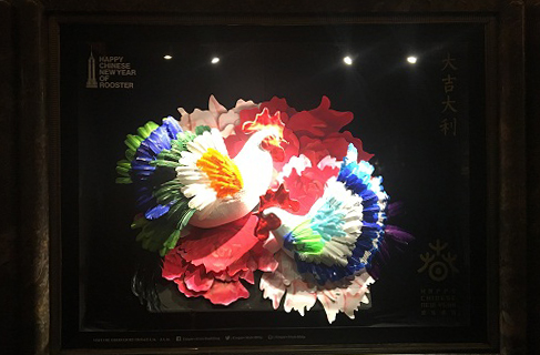 凱斯勒介紹,1月26日至27日連續兩晚,以“環球慶典”為主題,帝國大廈塔頂為慶祝中國新年再次點亮紅金兩色的吉祥彩燈。與此同時大廈一層將舉辦為期一個月的“歡樂春節”雞年生肖櫥窗展,主題為“錦雞報曉”、“大吉大利”和“金雞納?!?,希望給大家送上中國人民的新春祝福。