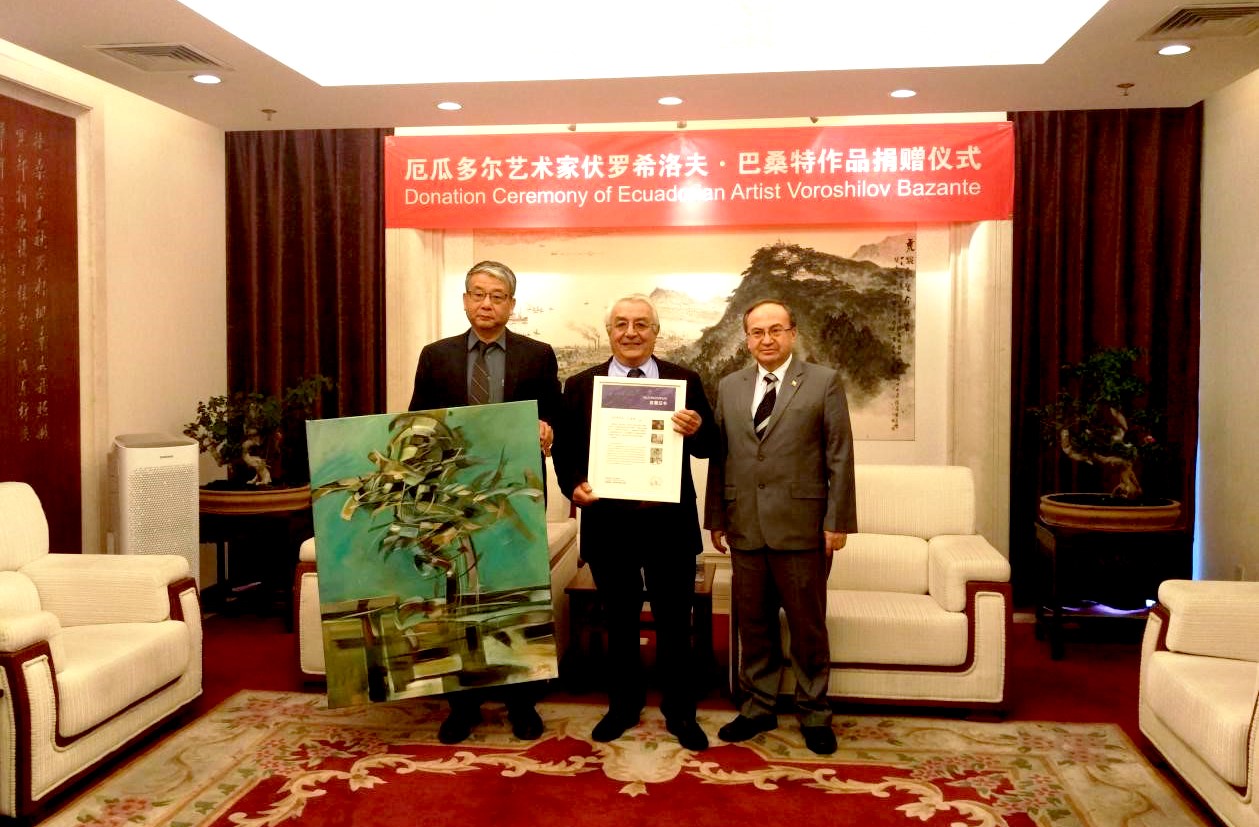 6月16日,厄瓜多爾藝術家伏羅希洛夫·巴桑特作品捐贈儀式在我集團舉行。厄瓜多爾駐華大使何塞·博爾哈、我集團副總經理閻東、厄瓜多爾駐華公使克勞德·勞拉出席了捐贈儀式。