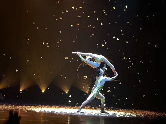 這里是廈門小白鷺藝術中心金榮劇場。中國歌劇舞劇院帶來古典舞《采薇》《水之靈》,典雅靈動如春風拂面;南非曼杰民間舞蹈團用肢體語言描述了熱鬧非凡的部落生活,由一位演奏家駕馭的十幾種傳統樂器,是舞者的指令,也是節日狂歡的集結號;巴西黑天鵝舞蹈團把傳統桑巴與現代舞糅合在一起,展示了既傳統又現代的巴西風情;印度阿底提舞蹈學院的舞者,以眼花繚亂的手勢和步伐,演繹了印度八大古典舞派之一的卡塔克舞;技巧卓絕的莫斯科國立模范“格熱利”舞蹈團和“列茲金卡”國立模范功勛舞蹈團,用肢體語言講述了俄羅斯從波羅的海到太平洋、從高山到草原、從北方到南方這廣袤大地上的動人故事。整個夜晚都成了沸騰的海洋,觀眾的情緒在謝幕時刻被點燃:一個國家的演員謝幕完,伸出手迎接下一個國家的演員,最終,五國演員手牽手、微笑著向觀眾鞠躬,無需言語,卻傳遞出最美好的情感。晚會導演李世博說,這個特別設計的靈感就來自于此次合作,“我們藝術上有火花,文化上有交流,情感上相共通。我們愿意手拉手傳遞出長久的友誼和美好的祝愿”。