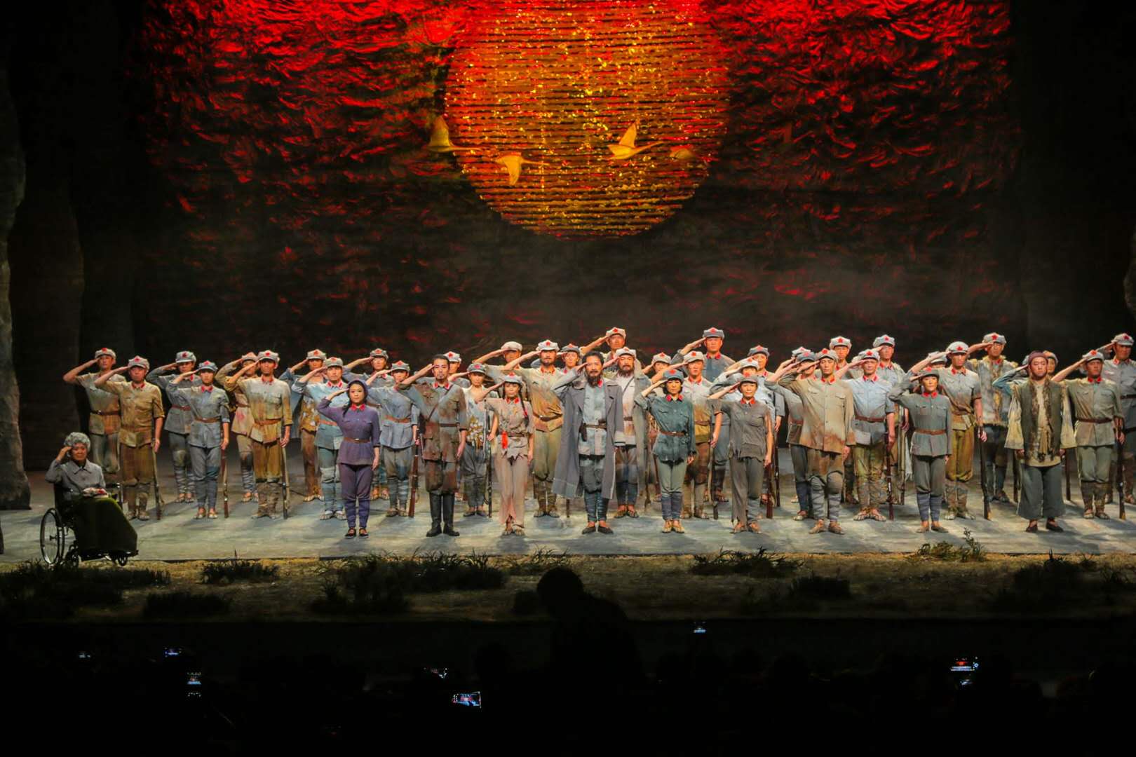 十年磨礪,從首秀到復(fù)排,《雁叫長(zhǎng)空》通過(guò)舞臺(tái),讓長(zhǎng)征變成了看得見(jiàn)、摸得著的愛(ài)黨愛(ài)國(guó)教育,散發(fā)著強(qiáng)大的精神魅力。無(wú)論是在中共中央黨校、國(guó)防大學(xué),或是在蘇州參加第十屆中國(guó)戲劇節(jié),或是在學(xué)校、部隊(duì),每一次演出,都給觀眾尤其是年輕人帶來(lái)深深的感動(dòng),這恰恰證明了紅色文化有穿透人心的力量。