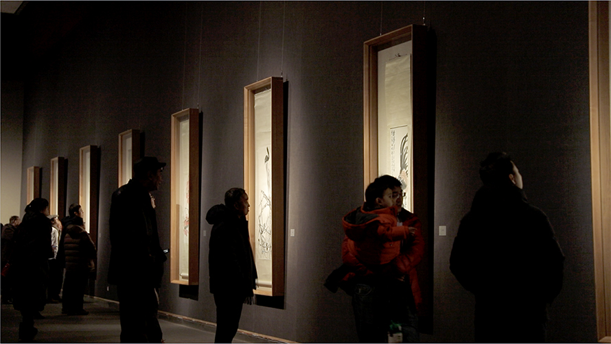 在展覽的文獻整合方面,本次展覽致力于打造帶有研究性的學術展,而不僅僅是普通意義上的畫展。為此,展覽組織撰寫了展覽前言、整理了齊白石年表、選擇了代表性印章、代表性照片、10卷本畫冊等資料,設置了前言墻、年表墻、照片墻。影像空間循環播出齊白石紀錄片?!峁┝擞勺髌?、文字、圖片、影像、畫集等多種元素組成的豐富視覺體驗。觀眾不但可以看到精彩的作品,而且還可以閱讀齊白石的生平、瞻仰齊白石的圖像、觀摩齊白石的紀錄片、欣賞齊白石的畫集,可以長時間的駐足、欣賞、閱讀、消化,全方位的了解齊白石,而絕不僅僅是看個名頭、看個新鮮、看個熱鬧。