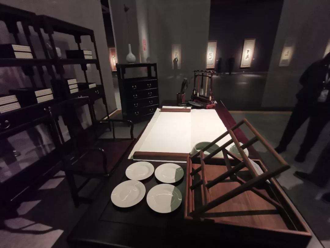 尤其值得一提的是,為了讓觀眾產生近似于身臨其境的現場感,展覽專門在展廳的中央設計、搭建了畫室模擬空間。天地儒風公司無償贊助使用了價值不菲的古典家具。模擬一種與展覽整體氛圍相符合的創作場景,增強展覽的趣味性,吸引觀眾更深入的探索大師的藝術世界。