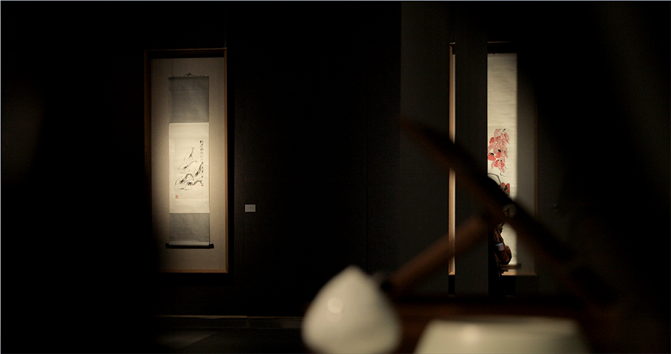 在展覽的空間布局方面,展覽設置了作品展示空間、影像觀摩空間、畫室模擬空間三個主體空間。以印有齊白石印章的紗幔做分割,營造了層次分明、錯落有致的精致空間感,致力于形成一種經常讓人眼前一亮、別有洞天的參觀體驗。