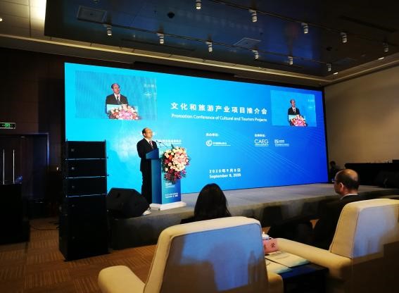 為進一步立足文旅融合及疫情之后恢復經濟,搭建文旅服務貿易合作平臺,探索文旅融合發展新路,2020年9月8日下午,中國國際商會文化和旅游產業項目推介會在國家會議中心舉辦。中國貿促會、中國國際商會副會長陳建安,中國對外文化集團有限公司黨委書記、董事長兼中國國際商會文化和旅游產業委員會主席李金生,北京冬奧組委市場開發部部長樸學東,中國旅游集團有限公司總經理助理陳榮,北京演藝集團總經理王玨,中國文化傳媒集團有限公司副總經理楊勝生,保利文化集團常務副總經理兼保利影業董事長李衛強,中國鐵旅華運旅游發展集團有限公司董事長曾輝,以及來自斯里蘭卡、孟加拉、波蘭、老撾等駐華使館和機構代表出席,知名文旅企業代表及新聞媒體共150余人參會。會議由中國國際商會副秘書長張屹主持。