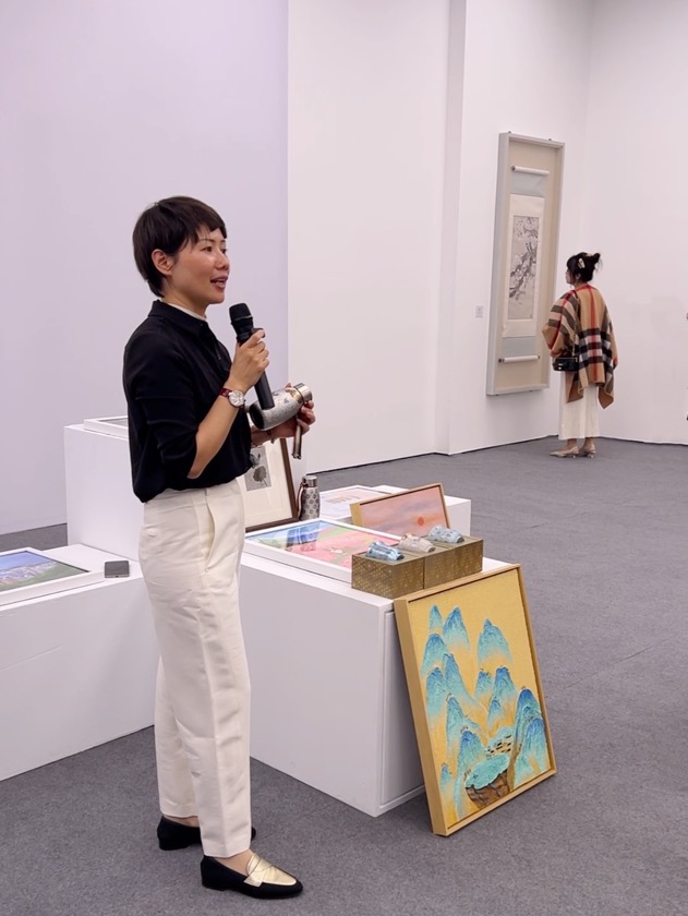 值得一提的是,本次展覽活動特加入了公益環節。金羽翼公益基金會也特選送了多幅孤獨癥青少年的「詠春」主題畫作,在現場展出、與大師作品形成對話。同時,三位孤獨癥青少年來到展覽現場,他們臨摹的大師作品栩栩如生。金羽翼基金會理事長張軍茹也特別表達了,希望在公益領域能以文化藝術為觸角,讓更多的有特殊需求的青少年學有多長、走向更廣闊的舞臺,同時藉助藝術大師的精湛造詣和影響力,促進全社會對這一群體的關注與了解。記者在現場還看到,由京鹿鹿品牌方結合孤獨癥孩子的畫作制作而成的鈦杯和鈦保溫杯格外引人關注,為有繪畫天賦的孤獨癥孩子打開了一個新的發展方向,很有意義。
